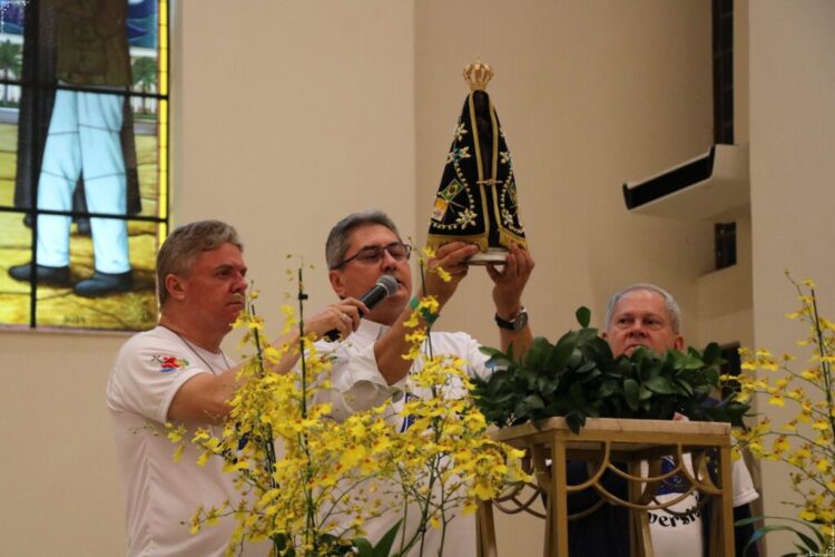 A peregrinação teve início com a Bênção dos Peregrinos, presidida pelo Pe. Paulo Jácomo e pelo Reitor, Pe. Paulo Vendrame, marcando o começo da caminhada sob a proteção divina e em espírito de gratidão. Em cada parada, momentos de silêncio, oração e contemplação reforçaram a espiritualidade mariana e a devoção à Mãe Aparecida.