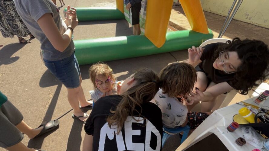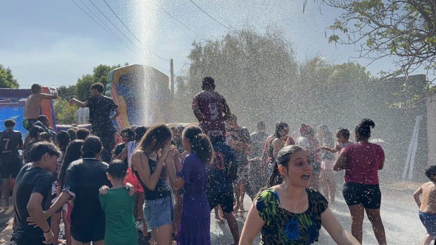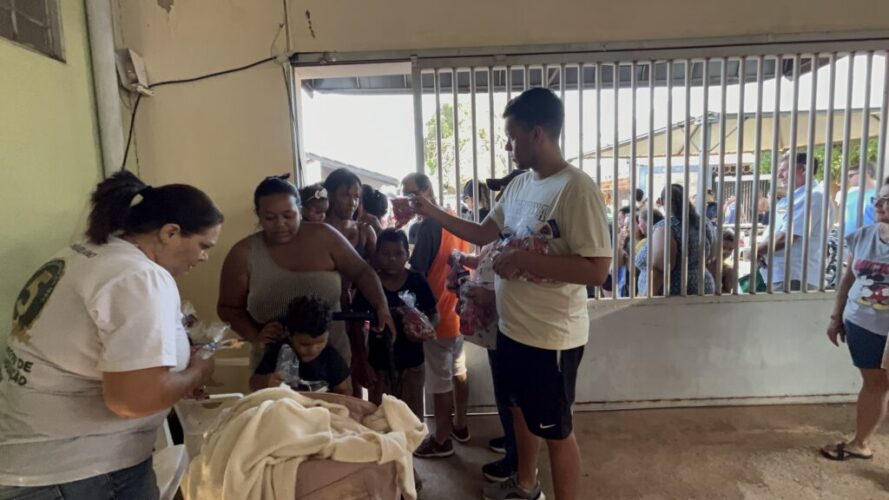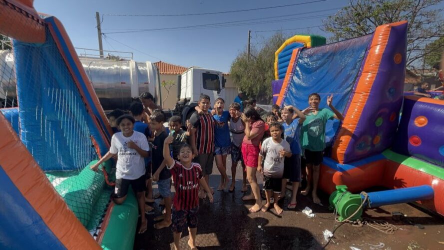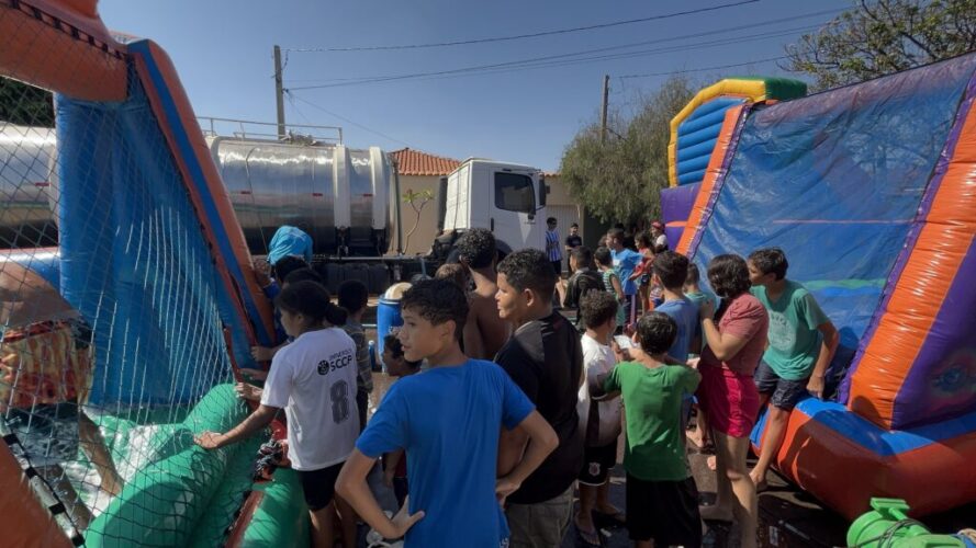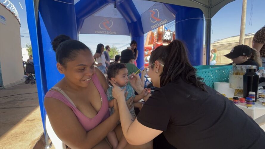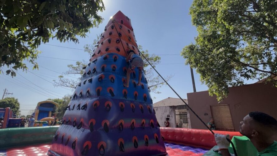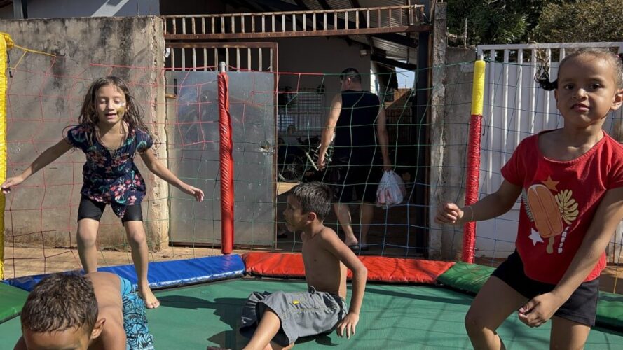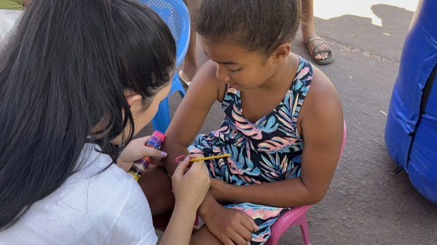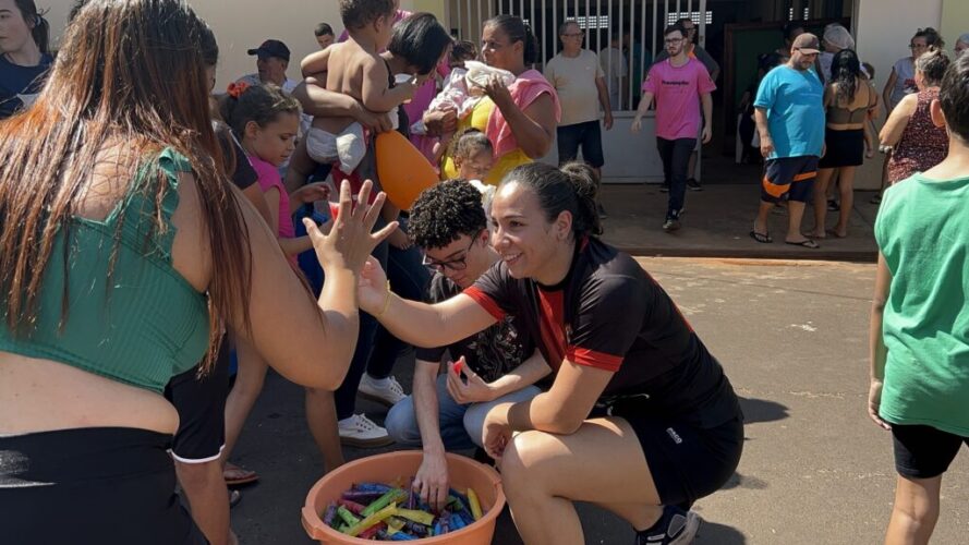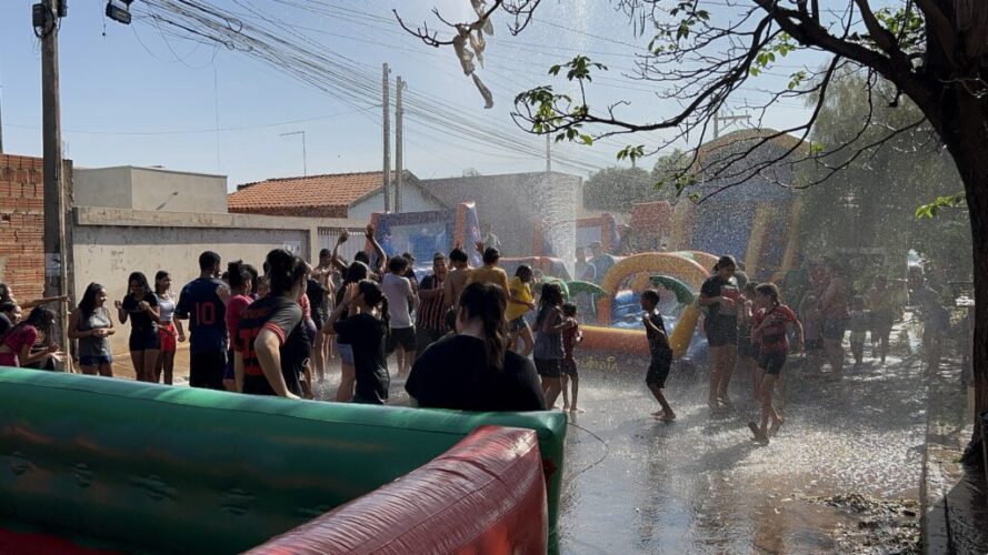 A programação incluiu brinquedos infláveis, distribuição de cachorro-quente, refrigerantes, gelinhos, saquinhos de doces e pintura facial, garantindo momentos de alegria para todos os participantes.