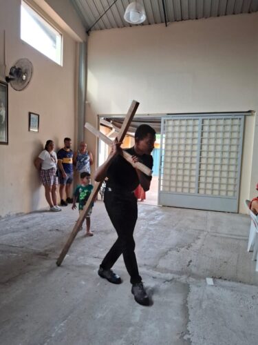 A celebração também apresentou elementos simbólicos da tradição cristã, como o círio pascal, os cravos — trazidos por Nivaldo de sua casa, utilizados em trilhos de trem — e a coroa de espinhos, feita com espinhos reais e passada de mão em mão. “A intenção era que cada oratoriano pudesse sentir o que Cristo sentiu. É uma forma de tornar essa experiência mais viva e tocante”, completou o voluntário, que soma mais de 20 anos de dedicação ao trabalho com oratórios.