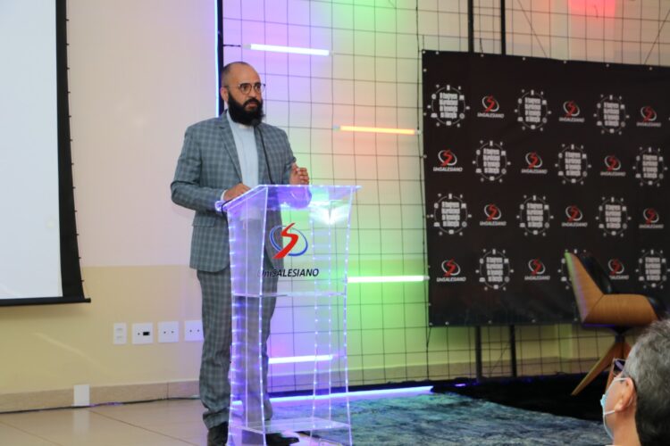 Em seguida, o Reitor e Diretor Geral do UniSALESIANO Lins, Pe. Paulo Fernando Vendrame, explicou o motivo da realização do congresso, que é porque as pessoas são conectadas em suas relações presenciais e também pelos meios virtuais, e que a pandemia acelerou o acesso e o uso da tecnologia no ambiente educativo.