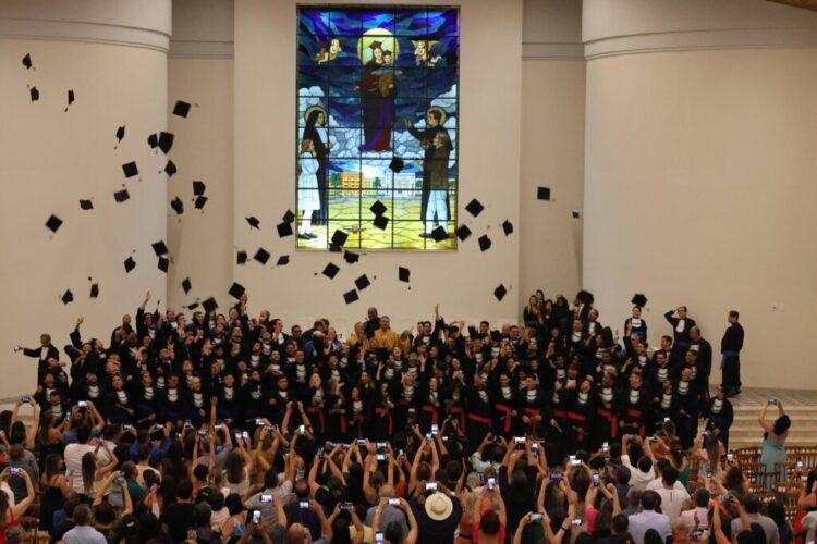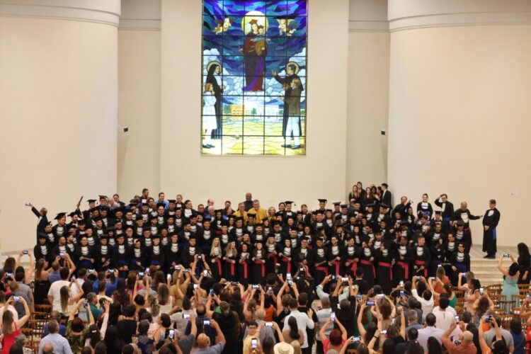 Por fim, Pe. Paulo ressaltou sobre a realização de sonhos que, como sementes plantadas, cresceram e floresceram ao longo da jornada acadêmica. Segundo ele, os sonhos que fazem cada um sonhar são os que impulsionam a levantar todas as manhãs, a enfrentar desafios, a perseverar diante das dificuldades. “Vocês, formando, um dia tiveram um sonho, e entre tantos, um destaque especial: chegar à formatura, concluir este período que os prepara para a vida. E hoje, vocês alcançaram uma estação importante: a formatura, a realização de um sonho que se torna um marco inesquecível em suas vidas”, finalizou.
