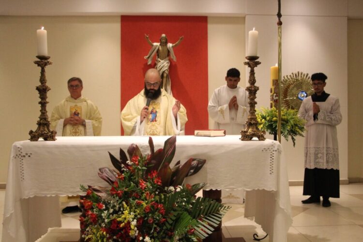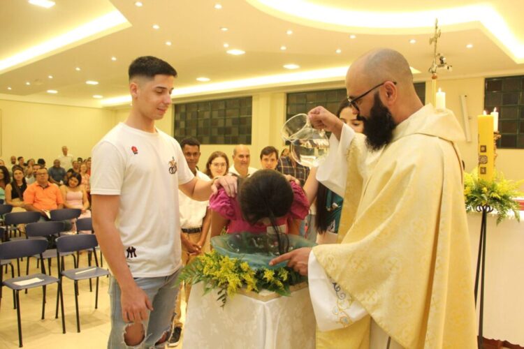 A capela do UniSALESIANO foi palco de uma emocionante celebração que marcou a conclusão de um longo processo de catequese para jovens universitários, na noite de 10 de novembro. A cerimônia, que incluiu a crisma e o batizado, foi conduzida pelo Diretor-Geral da Instituição, Pe. Erondi Tamandaré, SDB, e concelebrada pelo Pró-Reitor de Pastoral, Pe. Paulo Eduardo Jácomo, SDB.