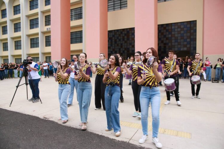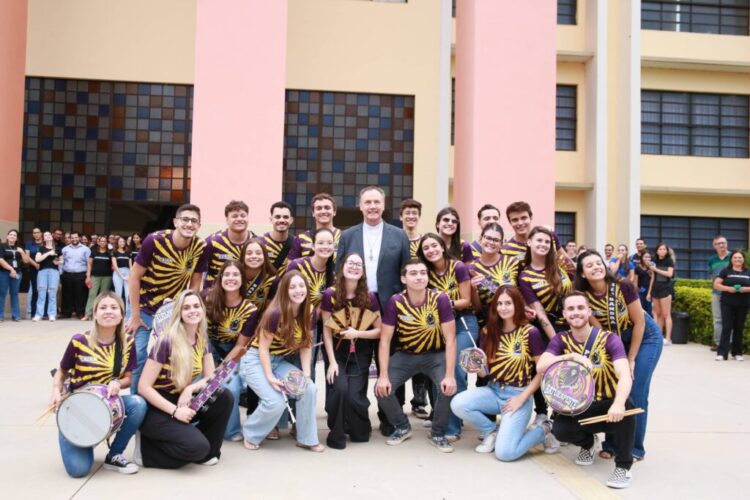 No final da tarde, o Reitor-Mor dirigiu-se ao UniSALESIANO, onde foi recebido no átrio da Instituição com a presença de colaboradores e acadêmicos e a apresentação da Bateria Universitária do Curso de Medicina do UniSALESIANO.
