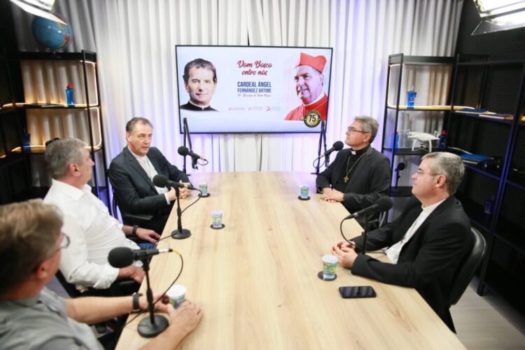 A programação seguiu com a gravação de um podcast envolvendo o Reitor-Mor, o Inspetor da Missão Salesiana de Mato Grosso, Pe. Ricardo Carlos, SDB, o Reitor do UniSALESIANO, Pe. Paulo Fernando Vendrame, SDB, o Pró-Reitor de Pastoral, Pe. Paulo Jácomo, SDB e o Pró-Reitor de Ensino, Pesquisa e Pós-Graduação do UniSALESIANO, Prof. André Ornellas, SDB. Esse momento proporcionou uma oportunidade única de compartilhar insights e perspectivas sobre a missão salesiana e a educação.