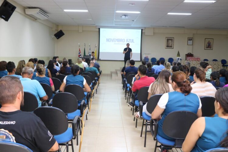 Pastoral Universitária e o Departamento de Recursos Humanos do UniSALESIANO promoveram mais uma Formação da Espiritualidade Salesiana, na tarde de 30 de novembro, com uma palestra sobre a campanha “Novembro Azul”, em parceria com a Liga de Oncologia do Curso de Medicina do UniSALESIANO, representada pelos alunos Bruna Tatibana, Tássia Mollesini e Guilherme Tadabone.