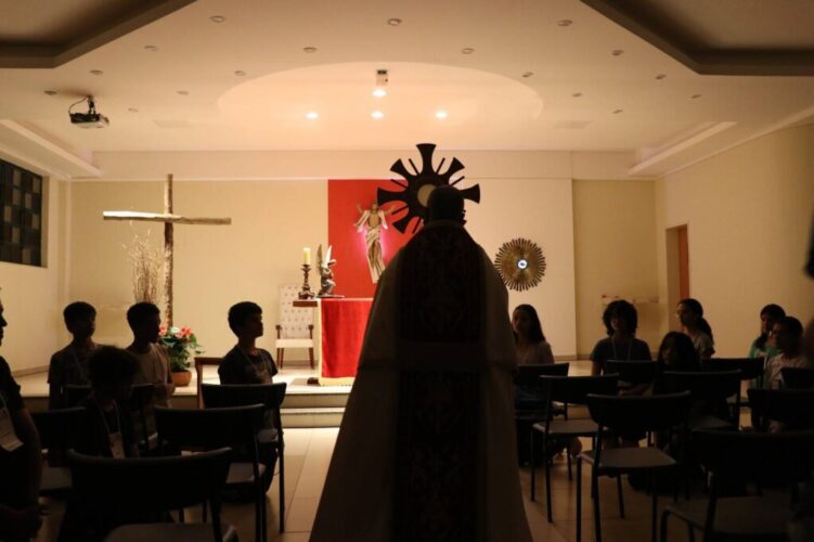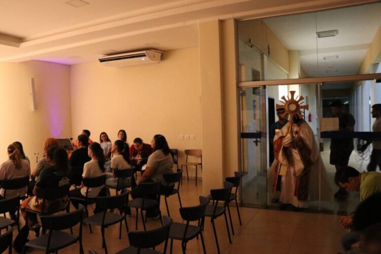 Os retirantes participaram ainda de uma gincana organizada pela Coordenadora do Curso de Educação Física do UniSALESIANO, Profª. Juliana Mitidiero. “Eles tiveram a oportunidade de estar ligados intimamente com Maria, fizeram confissões e participaram de um momento de reflexão familiar liderado por Bruno Carvalho”, explicou Juliana. Logo em seguida, foi celebrada a Santa Missa, na qual os familiares dos participantes também estiveram presentes.
