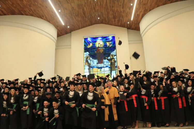 UniSALESIANO promoveu a Formatura dos Cursos de Direito (diurno e noturno – 19ª turmas) e Medicina Veterinária (8ª turma) na noite de 19 de dezembro, na Igreja Universitária, com a presença dos formandos, amigos e familiares. A mesa de honra foi composta pelos seguintes integrantes: Pró-Reitor de Ensino, Pesquisa e Pós-Graduação, Dr. André Ornellas, o Pró-Reitor de Pastoral, Pe. Paulo Jácomo, Pró-Reitora Administrativa, Vanda Moura, docentes e coordenadores dos cursos.