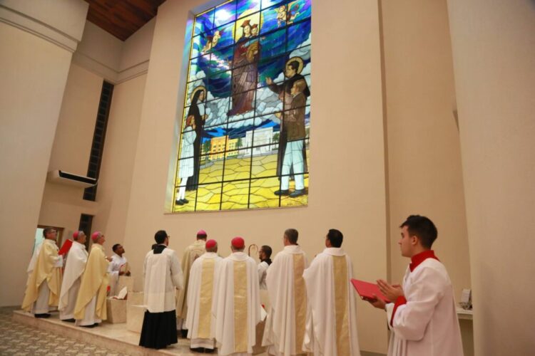 Na oportunidade, o Cardeal deu a benção ao vitral da Igreja Universitária “Nossa Senhora Auxiliadora”