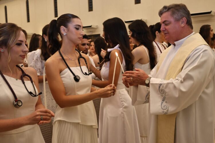 Pe. Paulo enfatizou que a medicina é uma missão de vida, muito além de uma profissão, e que cada médico deve brilhar como luz e ser sal na vida dos outros. Agradeceu ainda aos formandos pelo compromisso com o atendimento humanizado e altruísta.