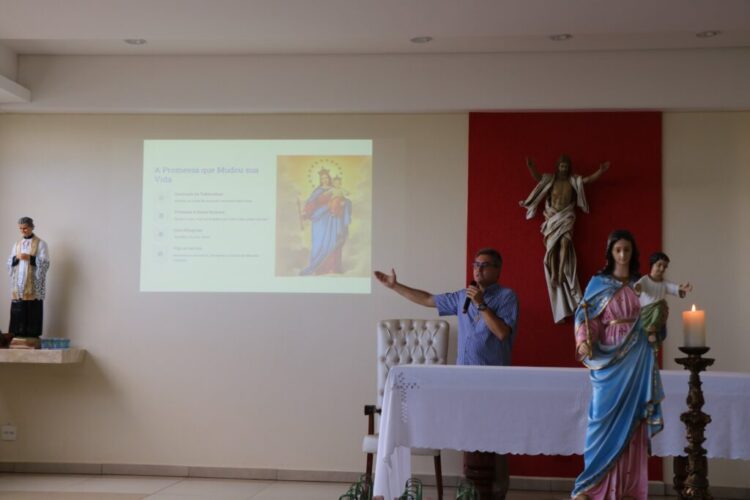 Colaboradores do UniSALESIANO participaram da Formação Mensal, realizada na Capela do Centro de Convivência, no dia 25 de março, cujo destaque foi a apresentação da nova filial da Missão Salesiana de Mato Grosso em Araçatuba, denominada “Zatti Saúde”. Aconteceu também a entrega de presentes aos aniversariantes dos meses de fevereiro e março e um momento de confraternização com comes e bebes.