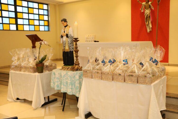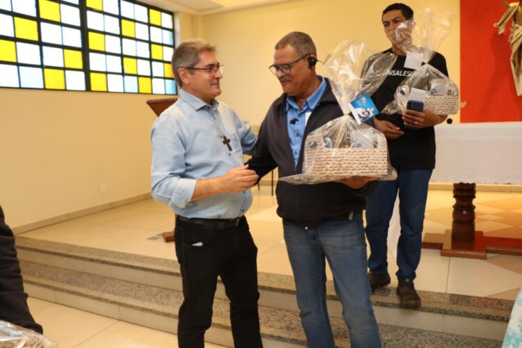 Ao final da celebração, os pais presentes foram agraciados com uma cesta contendo uma caneca personalizada e outras guloseimas, como um gesto de carinho e reconhecimento pelo papel fundamental que desempenham em suas famílias e na comunidade do UniSALESIANO.