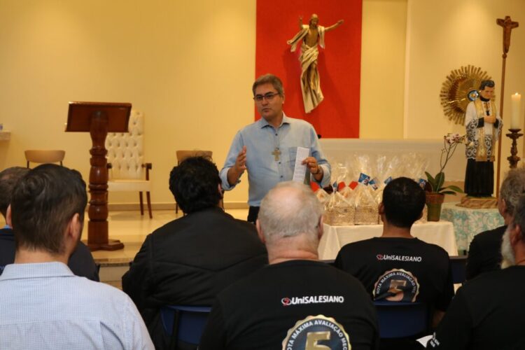 Durante a cerimônia, o Pró-Reitor de Pastoral do UniSALESIANO, Paulo Eduardo Jácomo, SDB, destacou a importância histórica e simbólica da figura paterna. “Há pelo menos quatro mil anos, o Dia dos Pais é comemorado. O importante é a lembrança, a data que marca a homenagem prestada”, disse ele, ao ressaltar que, se a figura de pai não fosse tão importante, Jesus não teria dito que Deus é Pai, porque a pessoa do pai é aquela que cuida, procura dar exemplo.