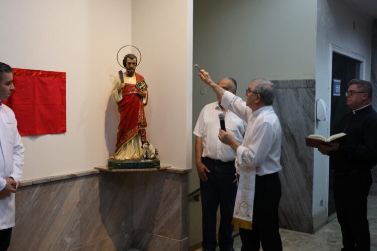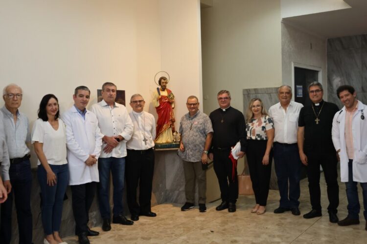 Dom Sérgio conduziu a bênção da imagem, da placa e dos presentes. “Que esta imagem de São Lucas seja um sinal de proteção e inspiração para todos que aqui trabalham e buscam saúde”, disse o bispo.