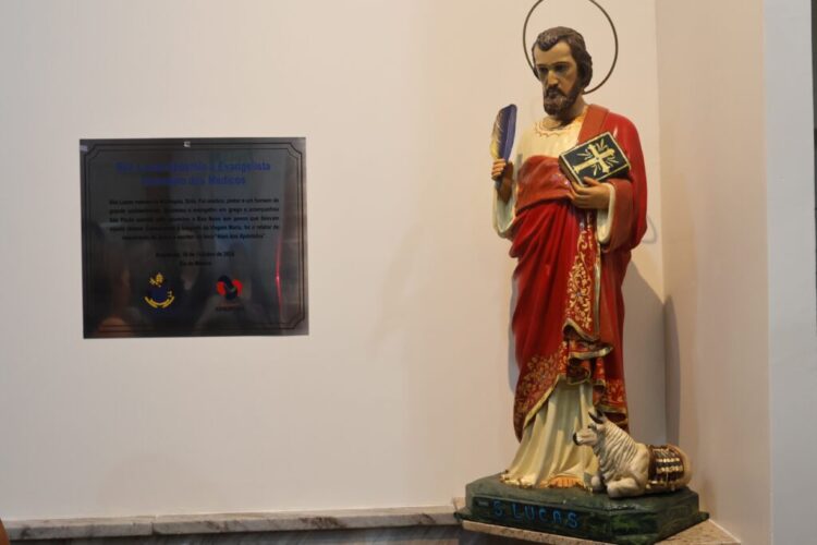 “São Lucas nos inspira a fazer o bem e a seguir o caminho da fé e do cuidado com o próximo. Hoje, além de abençoarmos essa imagem, queremos também agradecer e abençoar todos os médicos que exercem essa missão sublime”, disse o padre, destacando ainda o trabalho do diácono Osvaldo Medeiros, responsável pela restauração da imagem de São Lucas.