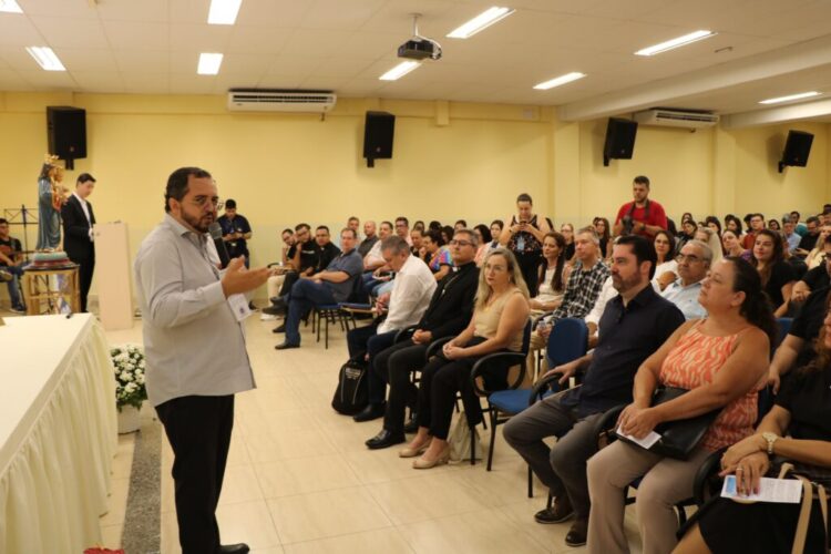 Após o anúncio, foi realizada a palestra do Prof. Dr. Ronaldo Zacharias, padre salesiano, renomado teólogo e educador, com o tema “Educadores: Profetas da Esperança!”. Em sua fala, Pe. Zacharias reforçou o papel transformador dos professores na formação acadêmica e humana dos alunos, dando ênfase a valores como ética, compromisso e empatia no processo educacional.