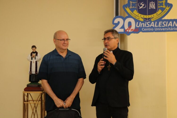Em seguida, o Vice-reitor e Diretor-Geral do UniSALESIANO Lins, Pe. João Marcos Araújo Ramos, SDB, e o Reitor da Instituição, Pe. Paulo Vendrame, SDB, saudaram os presentes e destacaram a relevância da unidade institucional. “Este é um momento único e especial para todo o nosso Centro Universitário. Celebramos nossa história e olhamos para o futuro com esperança e novas perspectivas”, ressaltou Pe. Vendrame.