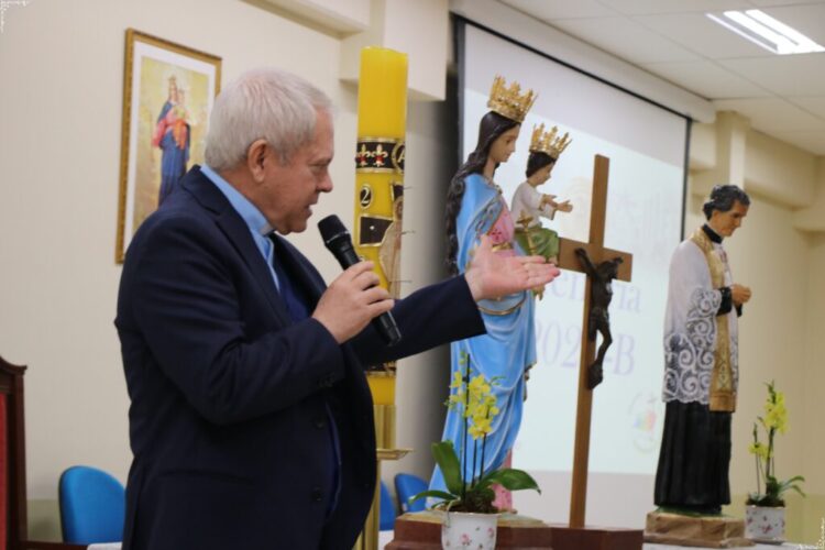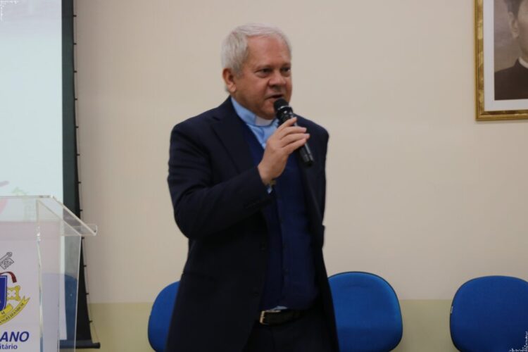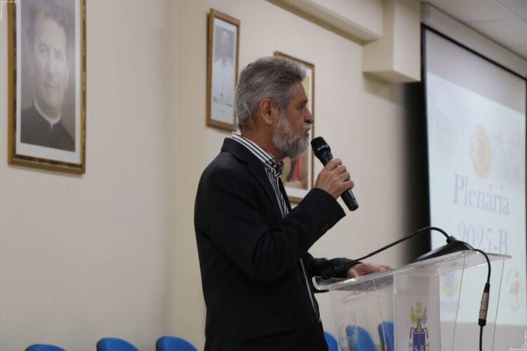 Com o tema “Educar hoje com os valores salesianos de modo integral: do humano ao tecnológico, da espiritualidade à visão digital e inteligência artificial”, Pe. Gildásio abordou a importância de integrar tecnologia e valores humanos, partindo de sua experiência internacional e das reflexões da Igreja sobre o tema.