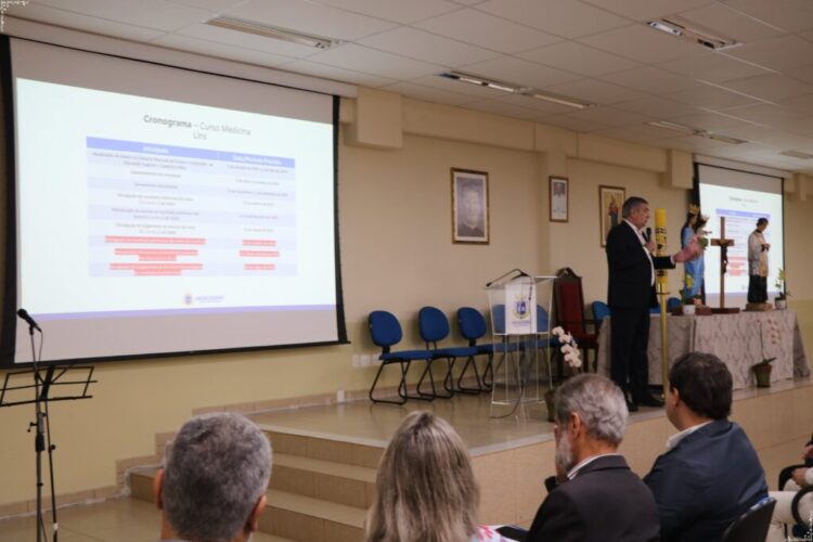 Em seguida, o Reitor do UniSALESIANO, Pe. Paulo Vendrame, SDB, deu as boas-vindas aos presentes e expressou sua emoção ao ver o auditório repleto após o recesso de julho: